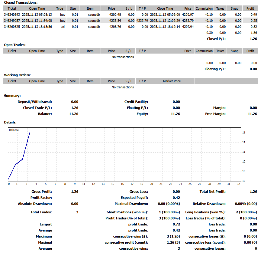 First trades taken on 2025-11-13