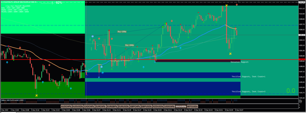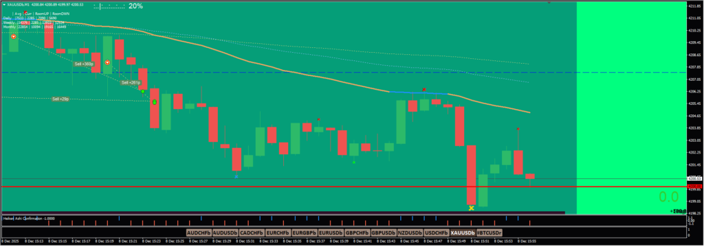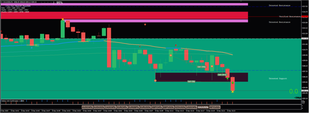 Only one position could be taken due to the account size, but the overall trend direction was up – so closed at TP.