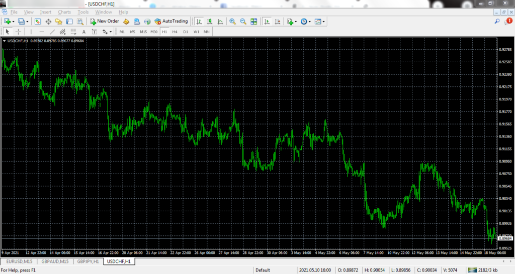 Here you can see the USDCHF pair. This is the H4 timeframe so each period separator is a week. You can obviously see that each week the price has been going up.
